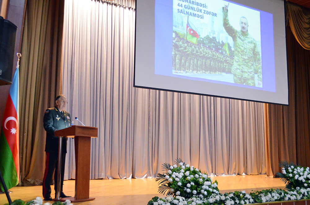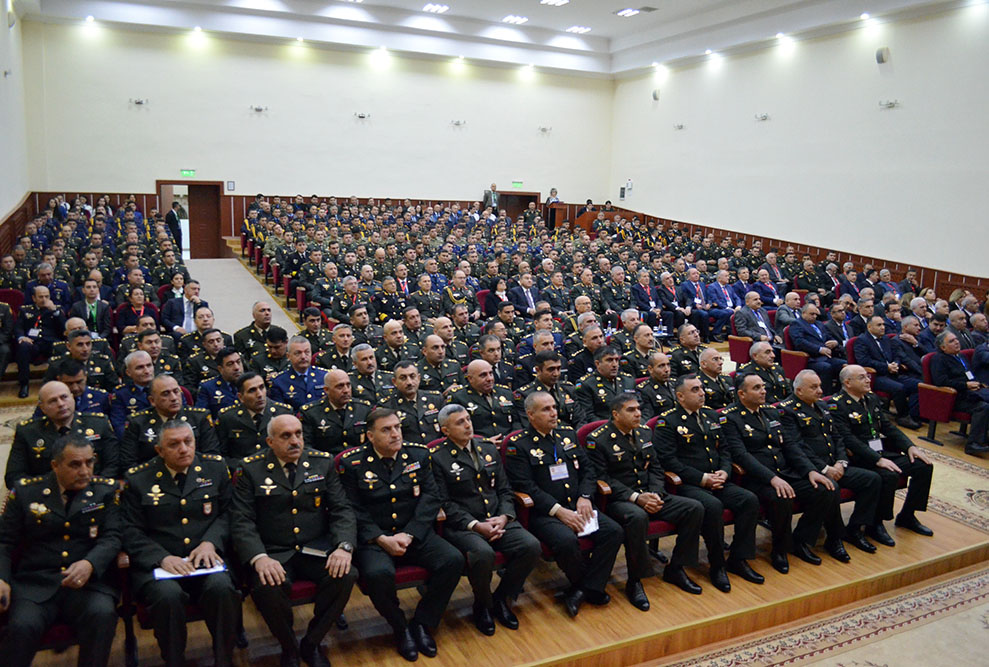 The rector of the National Defense University, Professor, Lieutenant General Heydar Piriyev, the President of the Azerbaijan National Academy of Science, Doctor of Philology Sciences, Academician, Honored Scientist Isa Habibbayli, the Chairman of the Supreme Attestation Commission Under the President of the Republic of Azerbaijan, Professor Famil Mustafayev, the General Director of National Aerospace Agency, professor Natig Javadov, the General Director of the Institute of Management Systems of the Ministry of Science and Education Republic of Azerbaijan, Academician Ali Abbasov, the Rector of Azerbaijan Technical University, Professor Vilayat Valiyev, the Chairman of the Board of the Social Research Center, Deputy Zahid Oruj and others also spoke at the scientific-practical conference.