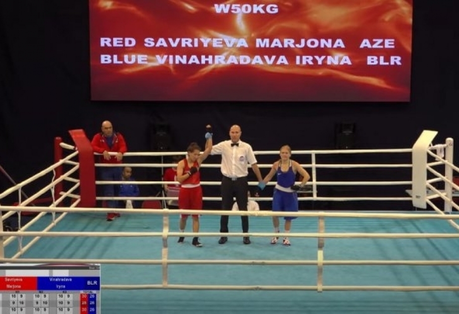 Azerbaijan`s Marjona Savriyeva has guaranteed at least a bronze medal at the EUBC U22 European Boxing Championships in Budva, Montenegro after beating Belarus Iryna Vinahradava 3-0 in the quarterfinal.