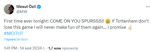 Former Turkish footballer Mesut Özil has taken to social media to share a post ahead of the highly anticipated Premier League match between Tottenham and Manchester City.