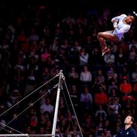The US gymnastics star was taking part in the world championships Saturday in Stuttgart, Germany, where during her floor exercise routine she landed a triple-double and then on the balance beam she nailed a double-double dismount.