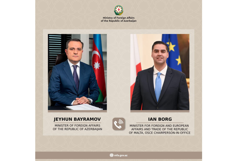 Azerbaijan's Minister of Foreign Affairs Jeyhun Bayramov had a telephone conversation Monday with Minister for Foreign and European Affairs and Trade of the Republic of Malta, OSCE Chair-in-Office Ian Borg, SİA informs.