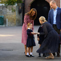 The Duke and Duchess of Cambridge, Prince William and the former Kate Middleton, accompanied the youngsters dressed up in navy and red school uniforms to begin a new year at Thomas's Battersea, a private school in a posh London neighborhood just a few miles from Kensington Palace.
