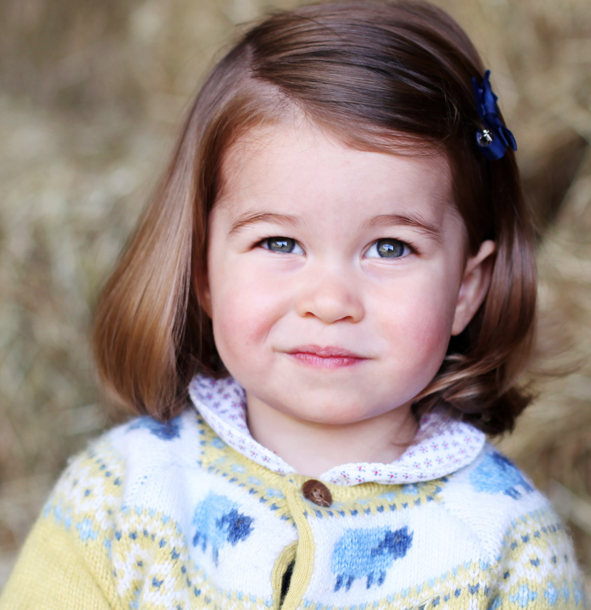 The four-year-old, the great-granddaughter of Queen Elizabeth II, wore a sweater, skirt and black Mary Jane shoes with white socks. She fidgeted a bit, twirling her fingers through her long neat ponytail.