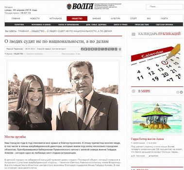 На сайте издаваемой в Астраханской области общественно-политической газеты "Волга" опубликовано интервью журналиста Марины Паренской с председателем регионального отделения Всероссийского Азербайджанского Конгресса Адалятом Гусейновым о многогранной деятельности Фонда Гейдара Алиева.