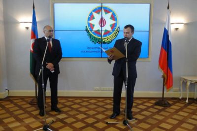 В ходе официального приема выступил исполняющий обязанности начальника управления стран СНГ и регионов РФ Евгений Кассюра. Он зачитал поздравительное обращение от имени губернатора Санкт-Петербурга Георгия Полтавченко, в котором были отмечены значительные этапы жизни страны, ознаменованные важными событиями и большими достижениями азербайджанского народа. Также была отмечена важность укрепления взаимовыгодных связей между Санкт-Петербургом и Азербайджаном.