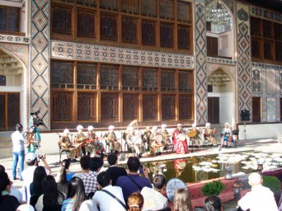 Как сообщает SİA со ссылкой на АзерТАдж, 3 июля во дворе жемчужины архитектуры XVIII века - Дворца шекинских ханов выступил Ансамбль старинных музыкальных инструментов.