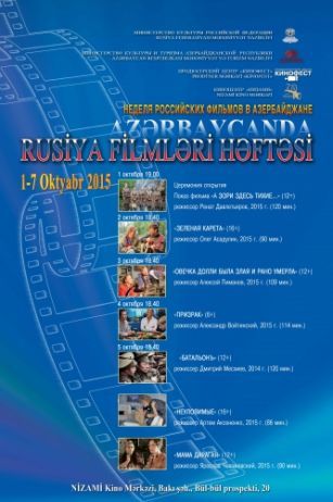 С 1 по 7 октября в Азербайджане пройдет неделя российских фильмов. Мероприятие будет организовано при поддержке Министерства культуры Российской Федерации, продюсерского центра "Кинофест", Министерства культуры и туризма Азербайджанской Республики и посольства России в Азербайджане. Церемония открытия будет проведена в кинотеатре "Низами".
