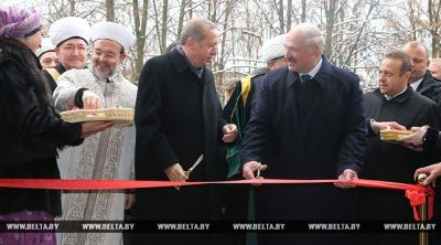 Президент Турции Реджеп Тайип Эрдоган 11 ноября прибыл в столицу Белоруссии Минск с официальным визитом. По сообщению SİA со ссылкой на Утро.ру, в этот же день он провел переговоры с президентом Белоруссии Александром Лукашенко. После переговоров лидеры двух стран отправились в Соборную мечеть Минска для участия в церемонии ее торжественного открытия. Выступая на церемонии, Лукашенко подчеркнул, что Белоруссия славится традициями веротерпимости и взаимного уважения между людьми разных национальностей. Он добавил, что открытие Соборной мечети в столице Беларуси - это знаковое событие как для мусульманской общины страны, так и для всех ее граждан. В Белоруссии ценят мир и спокойствие, поэтому строят храмы для всех конфессий, любой гражданин страны вправе найти свою дорогу к своему храму, и никто не имеет права и не должен его понуждать поступать иначе, отметил Лукашенко. Глава Белоруссии выразил убеждение, что Соборная мечеть, возведенная при личной поддержке президента Турции Реджепа Эрдогана, станет для мусульман Белоруссии и всего белорусского народа важным духовным центром, источником просвещения и распространения гуманистических идей и истинных целей ислама. Лукашенко и Эрдоган ознакомились с устройством религиозного сооружени и оставили записи в Книге почетных гостей Соборной мечети Минска.