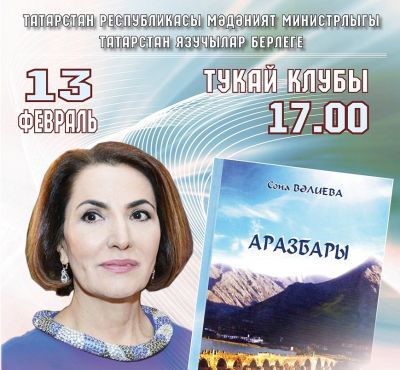 В Республике Татарстан состоится презентация книги стихов "Аразбары" кандидата филологических наук, журналиста-ученого Соны Валиевой. По сообщению SİA, презентация будет организована Министерством культуры и Союзом писателей республики Татарстан. Планируемая 13 февраля презентация будет реализована в столице Татарстана Казани. Во время презентации участникам будет дана информация о научной и творческой деятельности Соны Валиевой и о других книгах, автором которых она является.