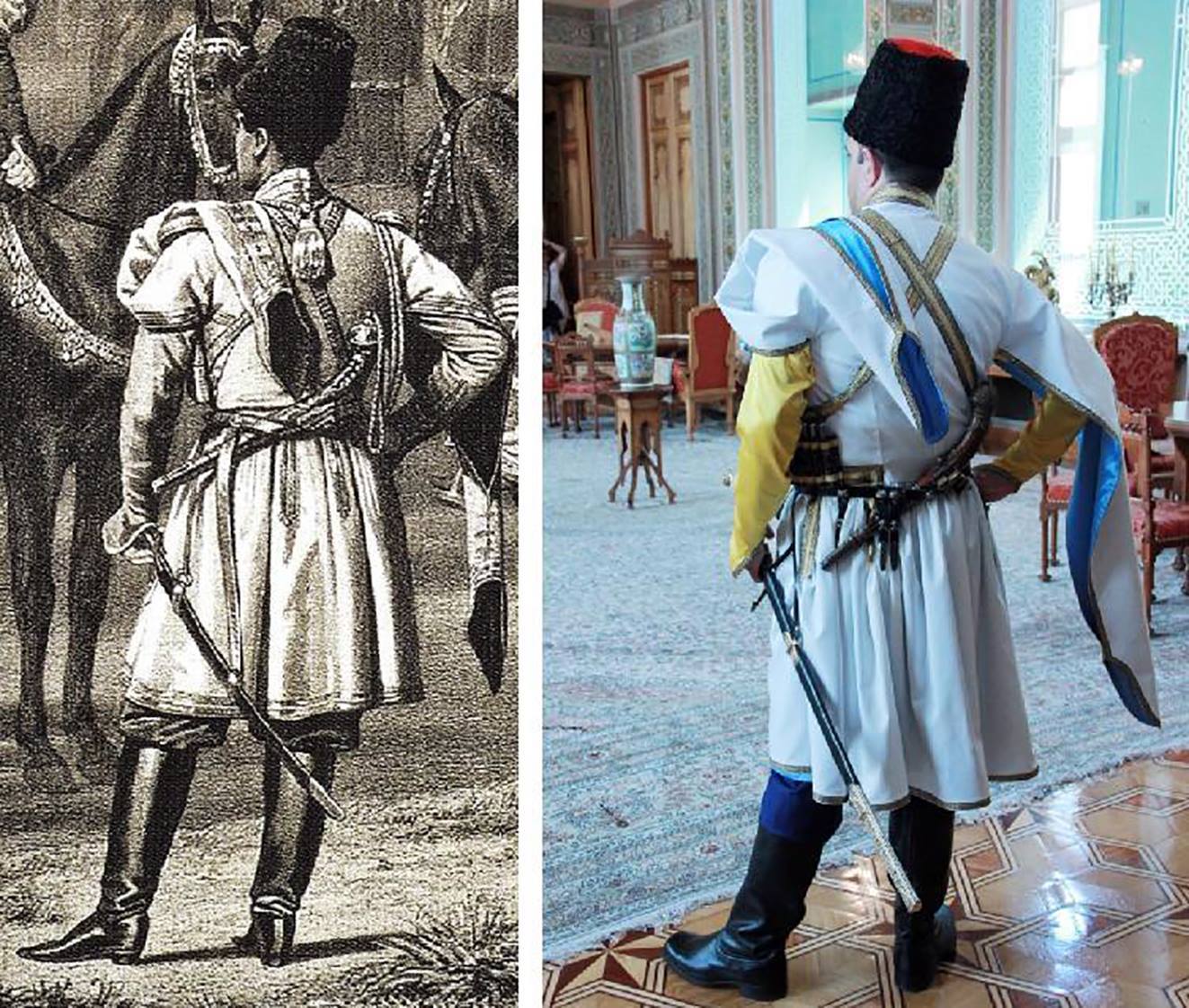 Униформа команды мусульман, переформированной в дальнейшем в 4-й взвод мусульман, была утверждена император Николаем Первым, как отмечают исследователи, по подобию униформы знаменитой Кенгерлинской конницы бывшего Нахичеванского ханства Азербайджана, парад которой был принят императором во время его путешествия по Кавказу в 1837 г.