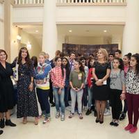 Затем вице-президент Фонда Гейдара Алиева Лейла Алиева встретилась с приехавшими в Баку в рамках реализуемой Фондом программы "Детская дипломатия" воспитанниками московского Центра содействия семейному воспитанию "Наш дом" и воспитанниками детских домов Баку, тепло побеседовала с ними, пожелала детям успехов.