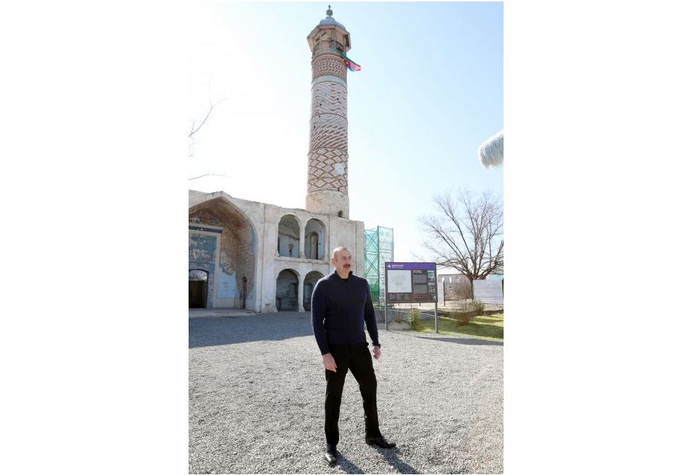 13 февраля президент Азербайджана Ильхам Алиев и первая леди Мехрибан Алиева ознакомились с ходом восстановительно-реставрационных работ в Джума мечети в Агдаме.
