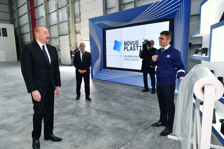 Как сообщает SİA, глава государства сначала заложил фундамент предприятия по производству технических газов производственно-коммерческой фирмы "Чинар-Сервис" в Сумгайытском химическом промышленном парке, принял участие в открытии предприятия по производству полимерных добавок ООО Novus Plastica, предприятия по производству упаковочной продукции ЗАО "Универсальная упаковочная промышленность", предприятия по производству керамических плиток ООО Azərbaycan Vanhong Ceramics Co., заложил фундамент предприятия по производству различных строительных химикатов ООО Kartaş Kimya.
