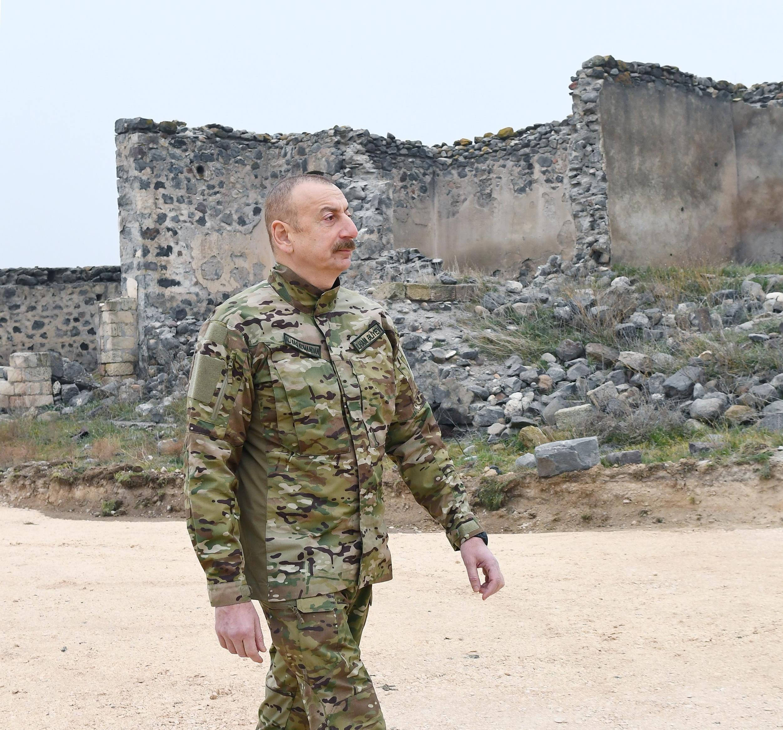 Президент сказал: «Это – город Зангилан. Мы уже были здесь и приехали вновь. Город Зангилан, как и другие города, можно сказать, полностью разрушен врагом. Осталось несколько домов. Здесь размещались их воинская часть, отделение полиции, a еще армяне, приехавшие из-за рубежа и незаконно проживавшие здесь. Вот во что превратил Зангилан ненавистный враг.
