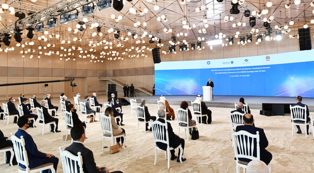 15 марта во дворце Гюлистан состоялась церемония закладки фундамента Гарадагской солнечной электростанции мощностью 230 МВт, которая будет построена в Азербайджане эмиратской компанией Masdar.