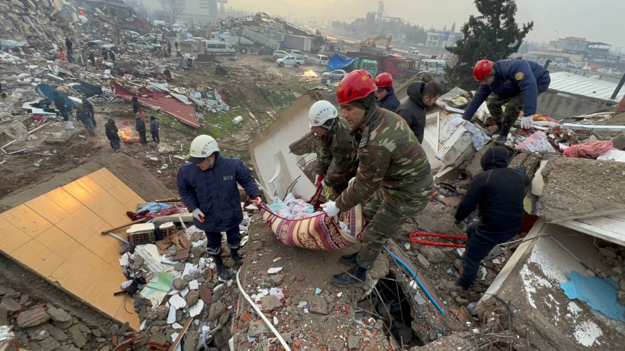 Спасатели министерства по чрезвычайным ситуациям (МЧС) Азербайджана продолжают поисково-спасательные работы по извлечению выживших из-под обломков на проспекте Гейдара Алиева в Кахраманмараше.