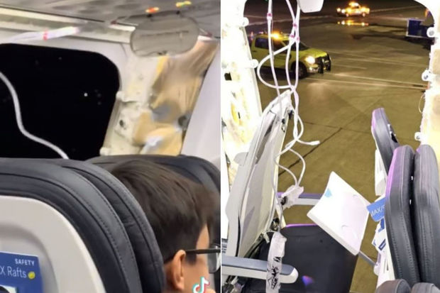 На публикуемых кадрах из салона видно, что кусок фюзеляжа вместе с одним из иллюминаторов отвалился, из-за чего в салоне образовалась дыра. К счастью, на пассажирском месте у стены никто не сидел.