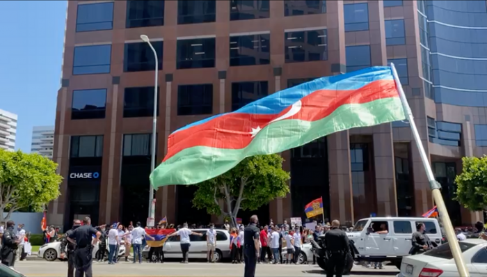 «Члены азербайджанской общины держали в руках плакаты, на которых по-английски было написано «Карабах – Азербайджан!», «Положить конец агрессии Армении!», «Справедливость к Ходжалы», «Армения развязывает войну против Азербайджана в период пандемии COVID-19», - сообщили в консульстве.