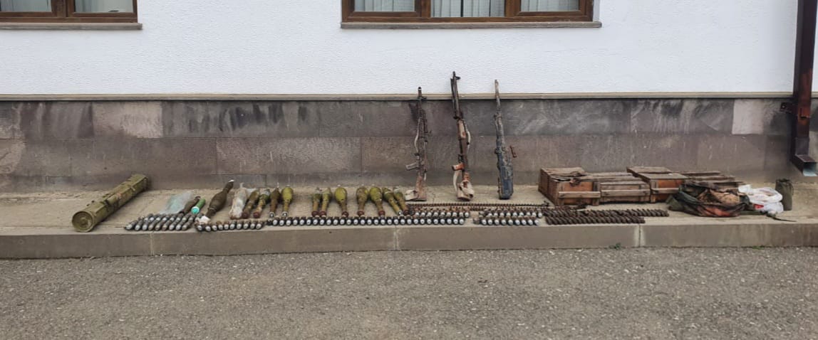 Обнаруженные 2 пулемета, 1 автомат, 1 "Фагот", 98 разнокалиберных снарядов, 6 290 разнокалиберных патронов и другие боеприпасы были переданы по соответствующим органам.