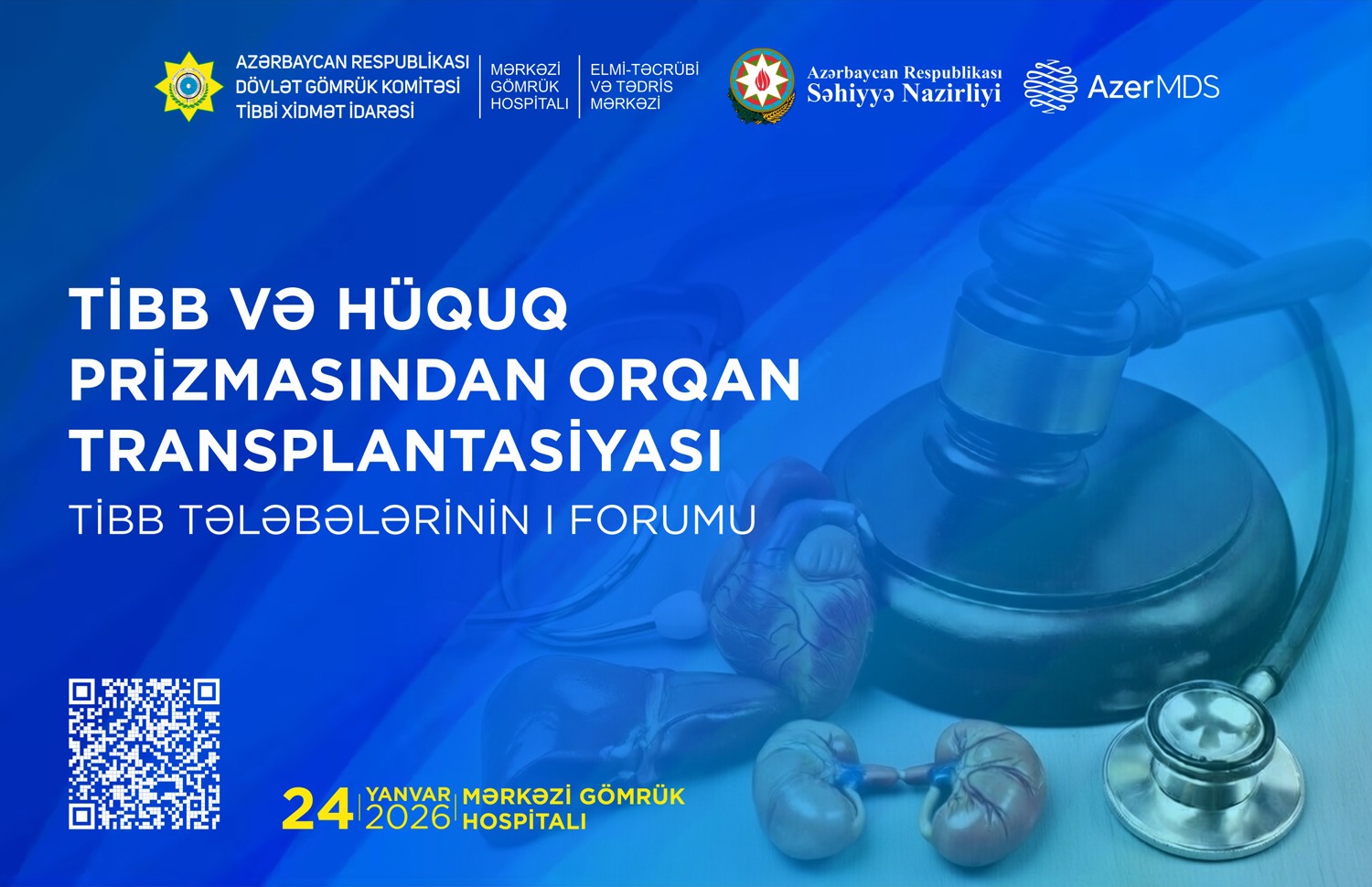 24 января 2026 года при совместной организации Научно-практического и учебного центра Медицинской службы Государственного таможенного комитета и Центрального таможенного госпиталя, при поддержке Координационного центра по донорству и трансплантации органов Министерства здравоохранения Азербайджанской Республики и Общественного объединения «Врачи и студенты-медики», состоится I Форум студентов-медиков на тему «Трансплантация органов с точки зрения медицины и права».