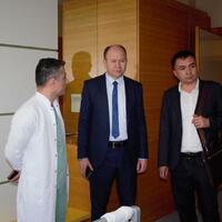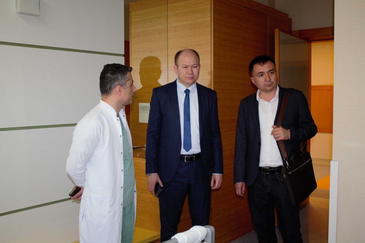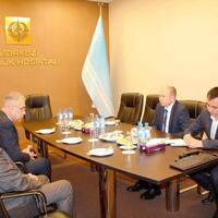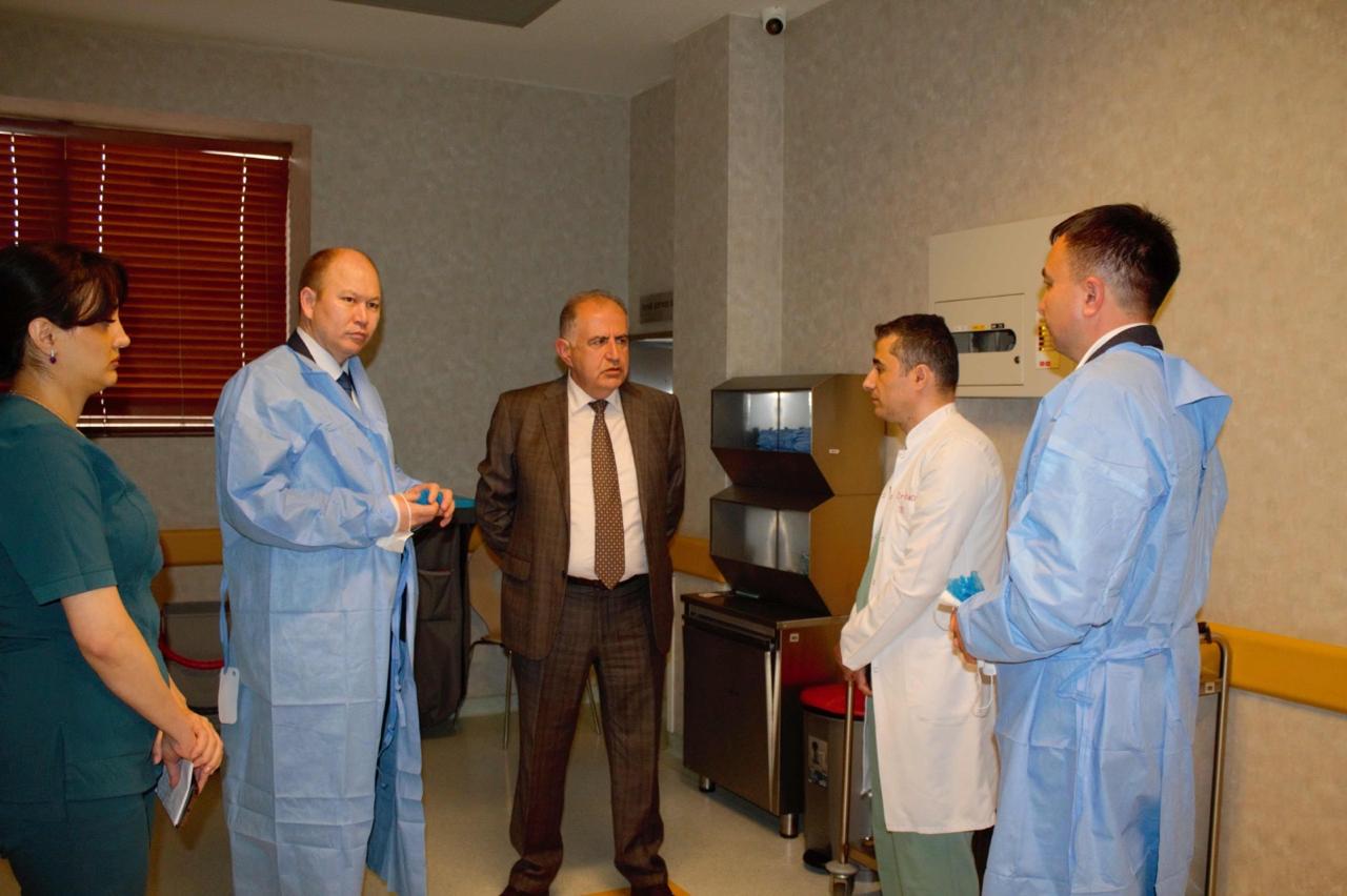 Затем начальник госпиталя – главный врач Бахтияр Мусаев проинформировал гостей о системе медицинского обслуживания, построенной в соответствии с международными стандартами, о высококвалифицированных операциях, проводимых в госпитале, включая трансплантацию почки и печени от трупного донора, сложные сердечно-сосудистые хирургические вмешательства, а также такие уникальные инвазивные кардиологические процедуры, как MitraClip, TAVI, EVAR и другие. Б. Мусаев отметил, что подобные встречи имеют важное значение с точки зрения обмена опытом и реализации совместных проектов.