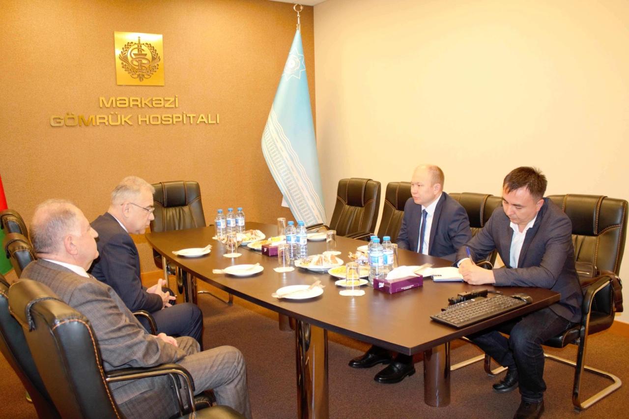 8 апреля 2026 года в Центральном таможенном госпитале состоялась встреча с представителями Министерства здравоохранения Кыргызской Республики, посвящённая развитию сотрудничества в сфере медицины. Во встрече приняли участие начальник Медицинской службы Государственного таможенного комитета Азербайджанской Республики Джейхун Мамедов, начальник Центрального таможенного госпиталя – главный врач Бахтияр Мусаев, заместитель министра здравоохранения Кыргызской Республики Бакытбек Кадыралиев, а также главный специалист Департамента лекарственных средств и медицинских изделий Министерства здравоохранения Кыргызской Республики Акилбек Абдулдаев.