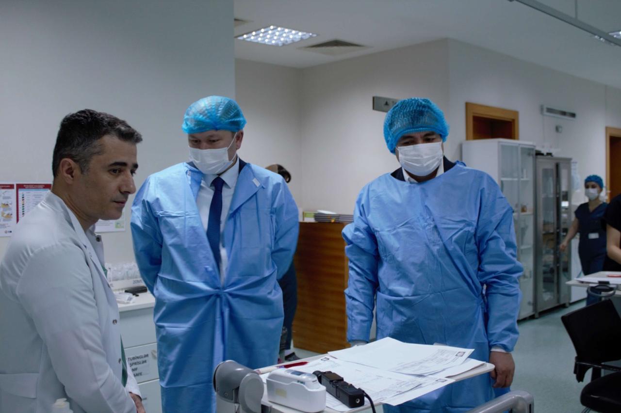 Затем делегация Министерства здравоохранения Кыргызской Республики посетила операционный блок, отделения анестезиологии и реанимации, палаты, а также отделения радиологии, скорой медицинской помощи и страхования Центрального таможенного госпиталя. Во время визита начальник госпиталя и сердечно-сосудистый хирург отделения сердечно-сосудистой хирургии Кенан Асадов сопровождали делегацию, предоставив подробную информацию о современной инфраструктуре госпиталя, его технических возможностях и передовых медицинских услугах.