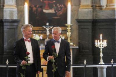 9. Стиг Эллинс (слева) и его партнер Стин Андерсен с розами после своей свадьбы в церкви Копенгагена 15 июня 2012 года. Дания – настоящий "пионер" в сфере однополых браков, она стала первой страной, легализовавшей их еще в 1989 году. (AFP - AFP/Getty Images)