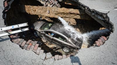 В американском штате произошел необычайный случай. Как передает SİA со ссылкой на Би-Би-Си, в Огайо автомобиль провалился под землю. Огромная яма появилась из-за прорванной водопроводной трубы – грунт под поверхностью вымыло, и асфальт под весом автомобиля обрушился вниз.