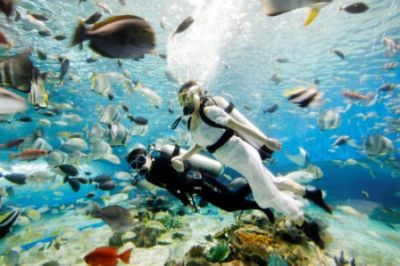 4. А эти новобрачные вообще решили, что называется, окунуться в океан своей любви – в аквариуме в Маниле. (Photo by Cheryl Ravelo/Reuters)
