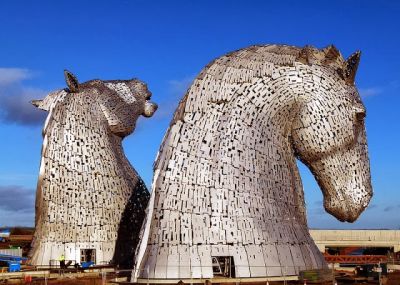 Строительство шедевральных двух 30-метровых скульптур лошадей "Kelpies" по проекту скульптора Энди Скотта началось еще летом 2013 года. Хоть даже гигантское сооружение полностью не завершено, но в общем можно сказать, что работы по строительству почти закончены. Данная работа станет самой большой скульптурой лошадей в мире и одним из самых заметных элементов искусства Великобритани, который будет располагаться в области Фолкерк в Шотландии. Инсталляция возводится в рамках проекта, который занимается регенерацией полосы земли в Шотландии, под названием "Helix". Ожидается, что двери замечательного сооружения будут открыты для посетителей до апреля 2014 года.