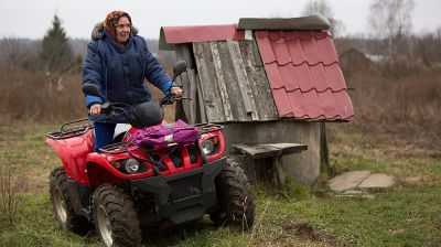 В рюкзак цвета фуксии Анна Александровна складывает газеты — "Лечебник", "Весть", заказные письма, квитанции. Выводит из гаража квадроцикл: "Раньше, в молодости, у меня лошадь была, но этот транспорт куда удобнее. Кормить не надо, возни меньше. Летом он у меня вообще без горюшка, а зимой подмерзает, надо заводиловку дергать — ну шнурок такой у него на пузе, дергалка. Я уже знаю, когда надо колесо подкачать, когда сиденье надо сымать и подключать проводки к нему, чтобы зарядился. А после работы я его всегда мою, в гараж чтоб грязным поставила — никогда, боже упаси. Ухаживаю за ним, как за ребенком".