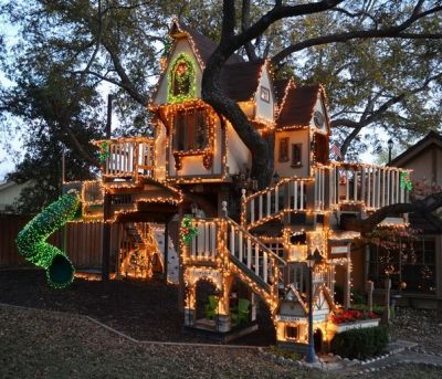 Новогодний домик на дереве от Джеймс Курван, украшенный Джери Вайкфильдом и её мужем находится в Техасе.