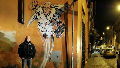 Граффити папы Римского в образе супергероя появилось в Риме ФОТО