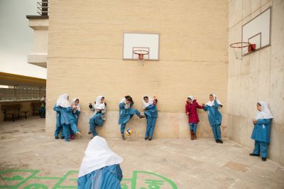 9. Третьеклассницы из частной школы высокого уровня на севере Тегерана играют в сангсар, 13 ноября 2011. Игра похожа на выбивалы, но отличается тем, что участники должны выстроиться в одну линию и лишь один человек должен выбивать их мячом. Согласно исламскому шиитскому закону в Иране, когда девочке исполняется 9 лет, она становится достаточно зрелой, чтобы самостоятельно принимать жизненные позиции и религиозные убеждения. Но этот закон оспаривается в некоторых частях страны. (Киана Хайэри)