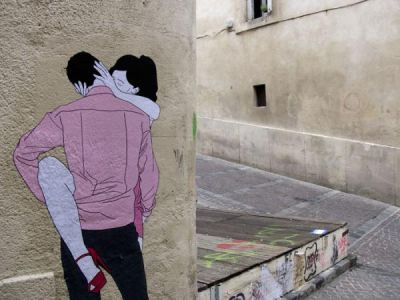 Минуты нежности и страсти, романтики и влечения Клэр запечатлела с помощью изображений целующихся парочек. Увидев такое граффити, каждый прохожий задержит взгляд и подумает о своем, радостном или печальном, прошлом или будущем.