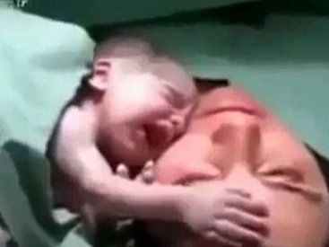 В сети появилось очень трогательное видео, которое за короткое время набрало более 2-х миллионов просмотров. На этих кадрах запечатлены первые минуты жизни новорожденного малыша, родившегося с помощью кесаревого сечения. Как передает SİA со ссылкой на Mirror, на видео видно, как медсестра подводит малыша к лицу матери, чтобы она увидела свое дитя. А малыш в свою очередь, положив свою крохотную ручку на лоб матери, перестает плакать, словно чувствуя маму. Еще более удивляет тот момент, когда медсестра хочет его забрать, а дитя начинает плакать и всеми ручками крепко прицепляется к лицу матери.