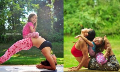 А всё дело в том, что почти каждый день Лора публикует фотографии себя в умопомрачительных позах йоги и в компании своих 4-летней дочки и иногда 8-летнего сына, которые страются повторять движения мамы.