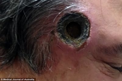 Жуткое заболевание подхватил 55-летний житель австралийского города Брисбен. Пытаясь избавиться от рака кожи, он начал использовать мазь, которую купил у врачей, практикующих альтернативные методы лечения. В результате в голове у австралийца образовалась черная дыра диаметром 2,5 сантиметра, сообщает Daily Mail.