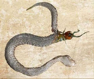 Сербский герпетолог была невероятно удивлена, когда наткнулась в Македонии на очень странную и необычную находку - молодую гадюку с головой сороконожки.