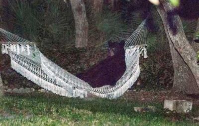 В минувшую среду жителей города Дейтона-Бич, штат Флорида, напугал черный медведь, который бродил недалеко от мусорных баков. В четверг барибал был замечен снова, однако в гораздо менее угрожающей позиции - он отдыхал в гамаке.