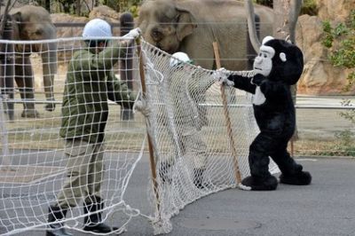 В это время в зоопарке, на самом деле, отрабатывались действия при побеге животных. Для того, чтобы практика была более реалистичной, один из сотрудников был одет в костюм гориллы.