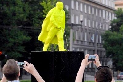 Фонтан-памятник, изображающий писающим вождя мирового пролетариата Владимира Ленина, появился на Центральной площади Рональда Рейгана (Новая Гута) в Кракове, сообщает Radio Krakow.