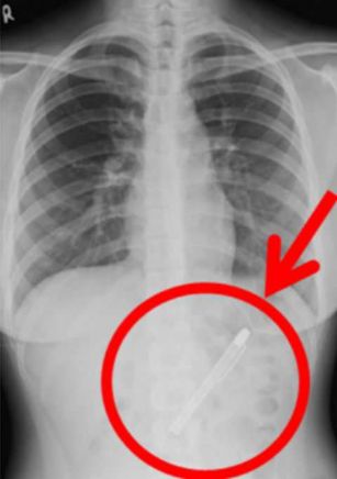 Заподозрив серьезную патологию, специалисты направили больную на рентгенографию, объяснив ей, что это исследование поможет им установить причину недомогания, и, как следствие, поставить правильный диагноз и назначить лечение. Однако, как выяснилось позже, они сильно ошибались в своих прогнозах - вместо признаков заболевания желудка медики увидели инородный предмет.