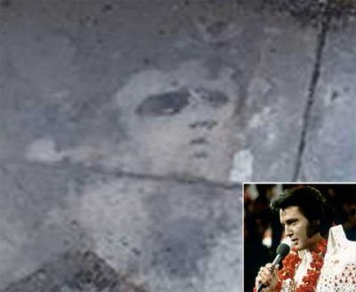 Группа друзей признались, что они все изрядно струхнули, когда лицо короля появилось на пепелище костра, разожженного ими в саду. Лицо Элвиса можно было ясно увидеть на обугленной брусчатке даже через неделю после того, как его заметила группа друзей.