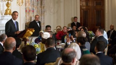 Торжественный ужин устроили в государственном обеденном зале в Белом доме. На него были приглашены некоторые депутаты конгресса, послы мусульманских стран, а также видные американцы-мусульмане. Барак Обама обратился к гостям с традиционным приветствием: "Рамадан карим!" По словам президента США, мусульмане внесли вклад в строительство Америки в буквальном смысле этого слова. "Поколения мусульман-иммигрантов, фермеров и работников фабрик, помогали прокладывать железные дороги и строить наши города. Мусульмане-изобретатели помогли построить некоторые из наших самых высоких небоскребов", — сказал Обама.