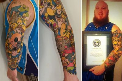 Рекордсмен не сообщил, планирует ли в дальнейшем нанесение новых татуировок с Гомером Симпсоном.