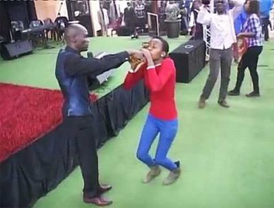 Видео, демонстрирующее, как прихожане из города Гаранкува, недалеко от Претории, пьют из прозрачной пластиковой бутылки жидкость желтого цвета, содержит предупреждение: "Если вы не можете превратить воду в вино, не пытайтесь повторить это".