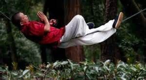 "Человек-кунгу-фу" утверждает, что отдыхать на одной веревке может каждый, если он силен и сосредоточен.