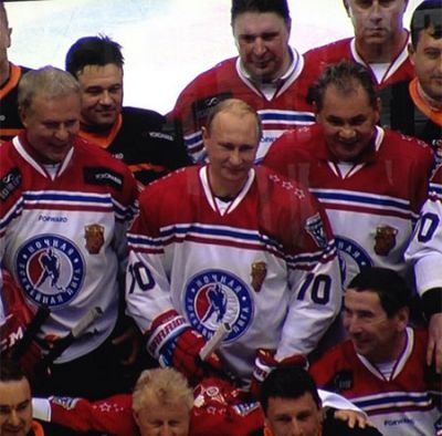 В гала-матче Ночной хоккейной лиги президент России Владимир Путин и министр обороны Сергей Шойгу вышли на лед в качестве хоккеистов. Путин появился на поле в форме под номером 70 - эта же цифра нарисована у каждого участника команды "Звезды НХЛ", так как сам финал был посвящен 70-й годовщине победы в Великой Отечественной войне. Игра проходила в Большом ледовом дворце города Сочи.